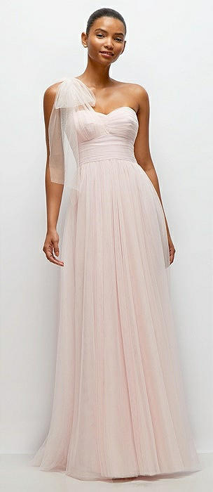 Scarf Tie One-Shoulder Tulle Maxi Dress with Full Skirt in ballet pink