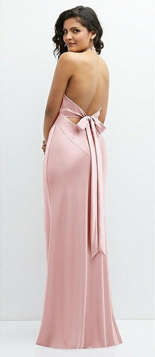 Criss Cross Halter Open-Back Stretch Satin Mermaid Dress in desert rose