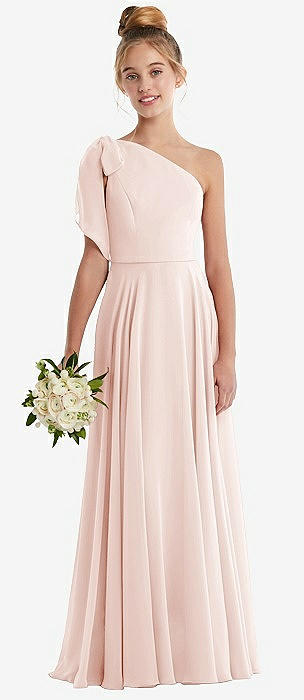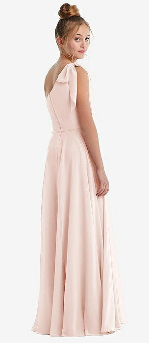 One-Shoulder Scarf Bow Chiffon Junior Bridesmaid Dress in blush