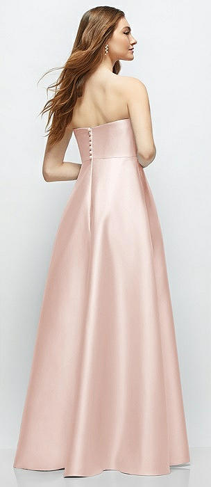 Strapless Satin Gown with Full Skirt and Covered Buttons at Back in blush