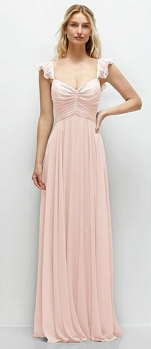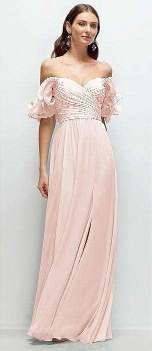 Convertible Ruffle Strap Chiffon Maxi Dress with Full Circle Skirt in blush