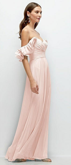 Chiffon Corset Maxi Dress with Removable Off-the-Shoulder Swags in blush