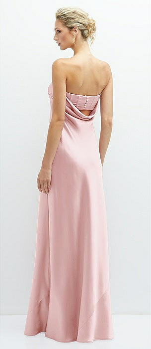 Strapless Maxi Bias Column Dress with Peek-a-Boo Corset Back in ballet pink