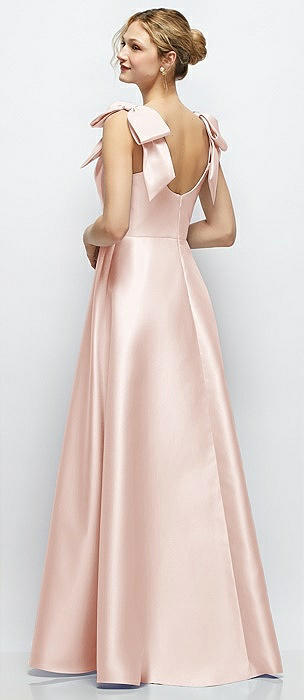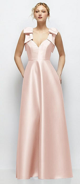 Deep V-Neck Satin Ball Gown with Shoulder Bows in blush