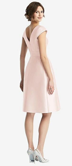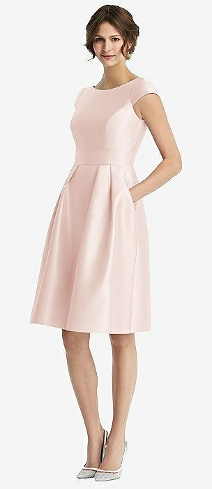 Cap Sleeve Pleated Cocktail Dress with Pockets in blush