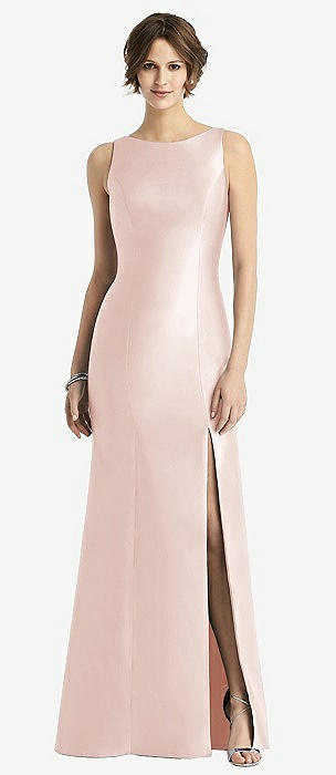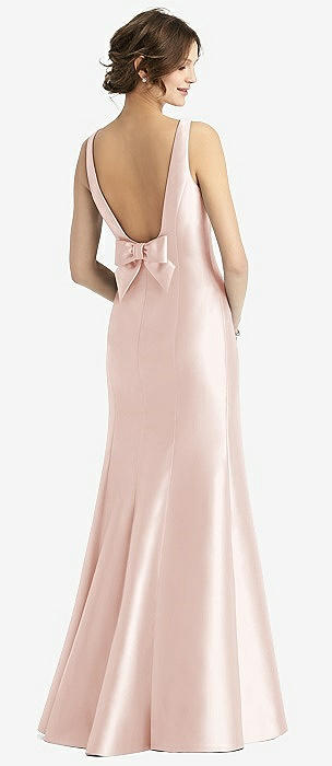 Sleeveless Satin Trumpet Gown with Bow at Open-Back in blush