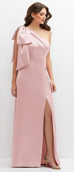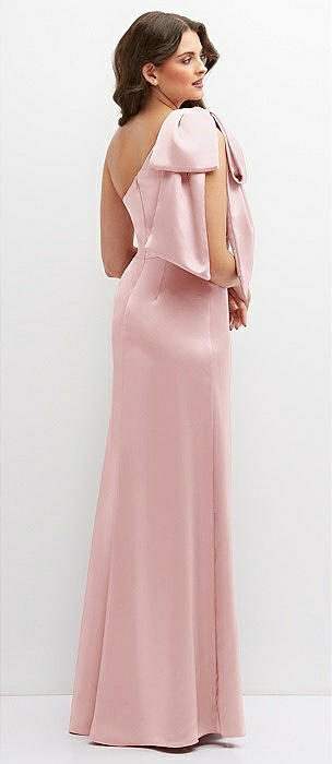 One-Shoulder Satin Maxi Dress with Chic Oversized Shoulder Bow