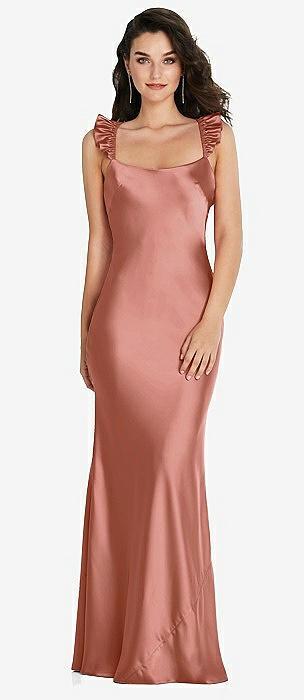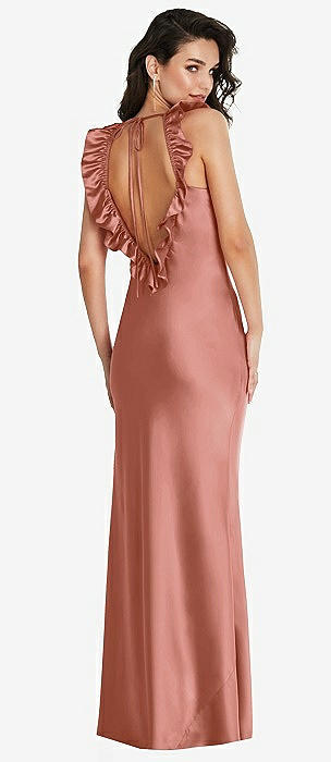 Ruffle Trimmed Open-Back Maxi Slip Dress in desert rose