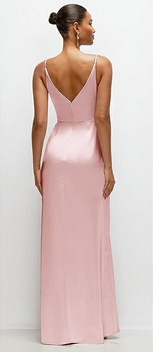 Cowl Neck Satin Maxi Dress with Adjustable Spaghetti Straps in ballet pink