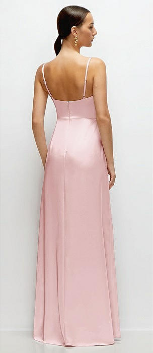 Square-Neck Satin A-line Maxi Dress with Front Slit in ballet pink