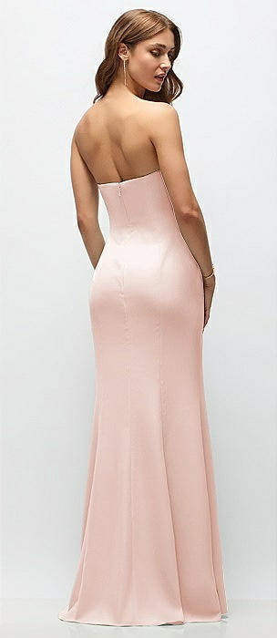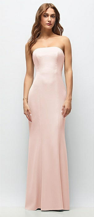 Strapless Fit and Flare Crepe Maxi Dress in blush