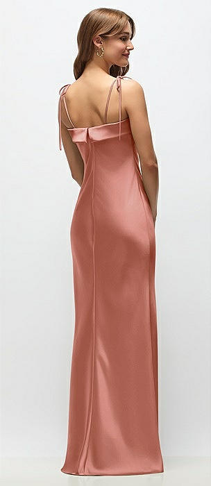 Cuff Neck Satin Bias Maxi Dress with Self-Tie Spaghetti Straps in desert rose