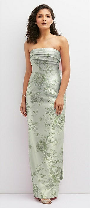 Strapless Cuff Neckline Floral Satin Trumpet Gown in sage cottage rose