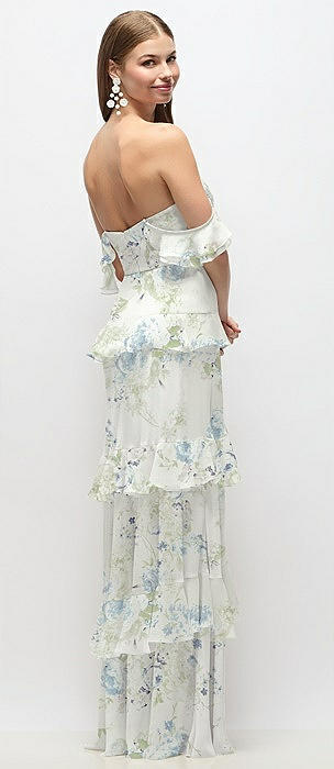 Off-the-Shoulder Cowl Floral Chiffon Tiered Ruffle Maxi Dress with Convertible Ruffle Straps in bleu garden