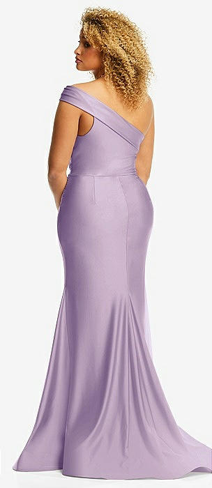 One-Shoulder Bias-Cuff Stretch Satin Mermaid Dress with Slight Train in pale purple