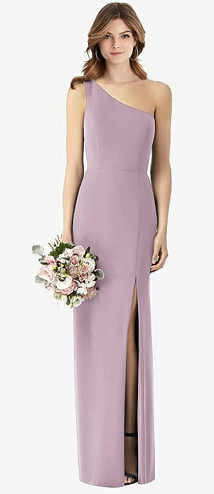 One-Shoulder Crepe Trumpet Gown with Front Slit in suede rose