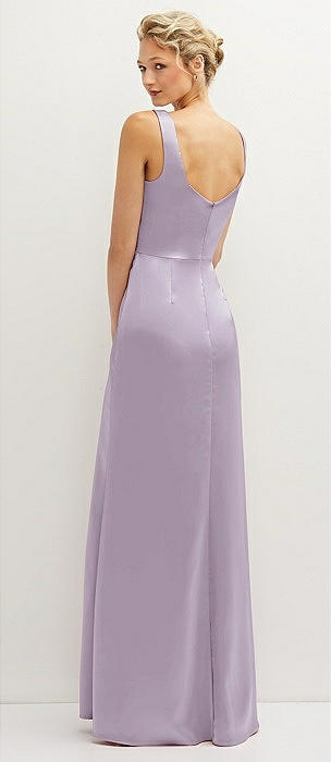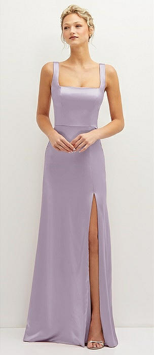 Square-Neck Satin A-line Maxi Dress with Front Slit in lilac haze
