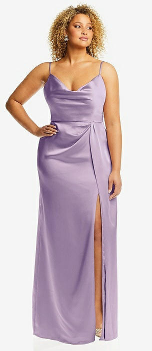 Cowl-Neck Draped Wrap Maxi Dress with Front Slit in pale purple