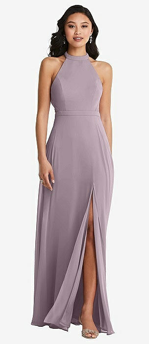 High Neck Halter Backless Maxi Dress in lilac dusk