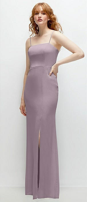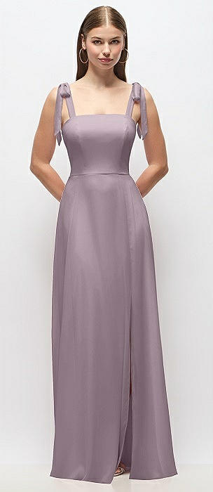 Strapless A-Line Stretch Satin Maxi Dress in lilac haze