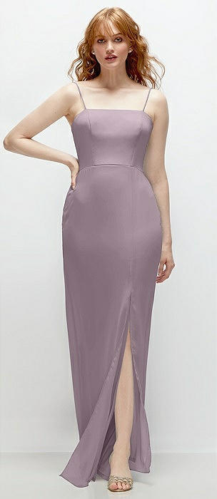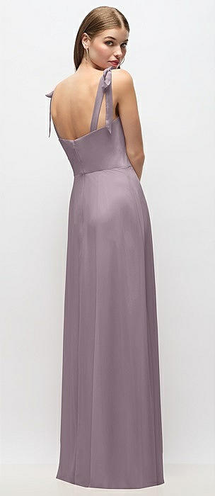 Tie-Shoulder Chiffon Maxi Dress with Front Slit in lilac dusk