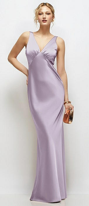 Sleeveless V-Neck Stretch Satin Bias Slip Maxi Dress in lilac haze