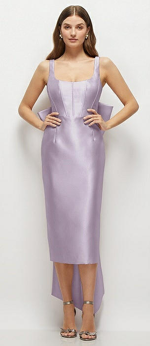 Scoop Neck Corset Satin Midi Dress with Floor-Length Bow Tails in lilac haze