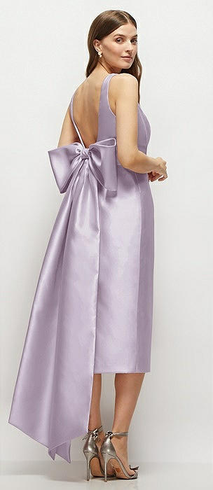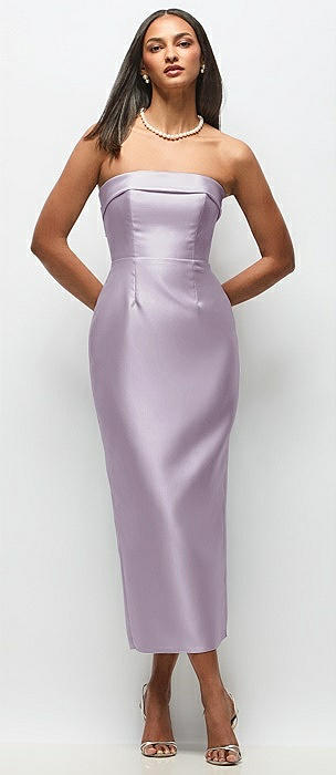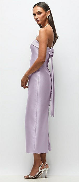 Strapless Cuff Satin Midi Dress with Column Skirt & Back Bow in lilac haze