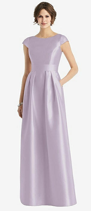 Cap Sleeve Pleated Cocktail Dress with Pockets in lilac haze