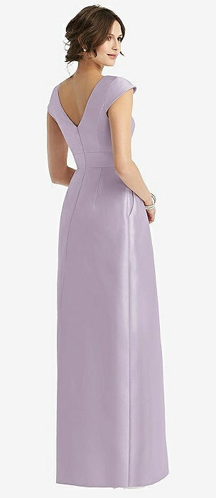 Draped Stretch Satin Maxi Dress with Built-in Capelet in pale purple