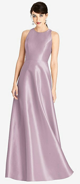Sleeveless Open-Back Satin A-Line Dress in suede rose