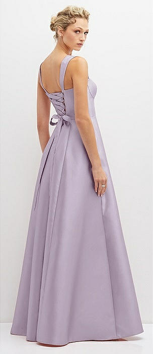 Lace-Up Back Bustier Satin Dress with Full Skirt and Pockets in lilac haze