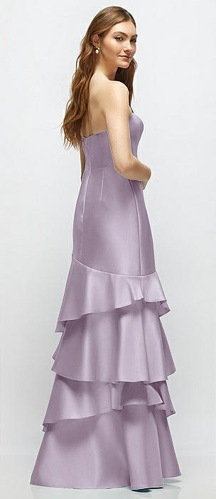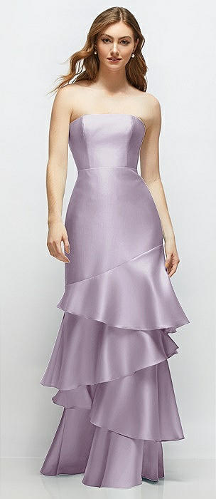 Strapless Bodycon Maxi Dress with Tiered Ruffle Skirt in lilac haze