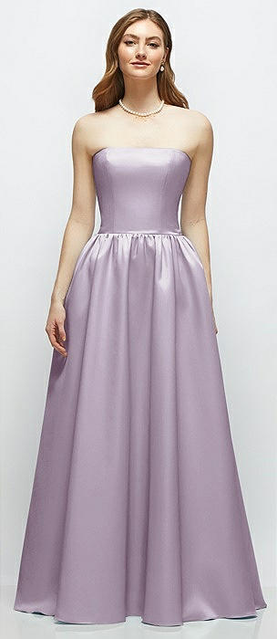 Strapless A-Line Stretch Satin Maxi Dress in lilac haze
