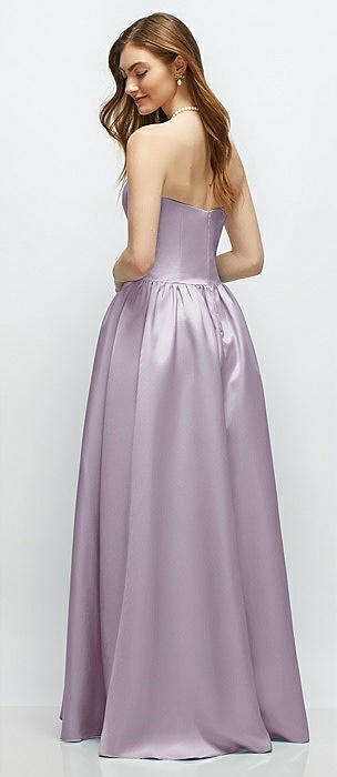 Strapless Satin Drop Waist Gown with Full Skirt in lilac haze