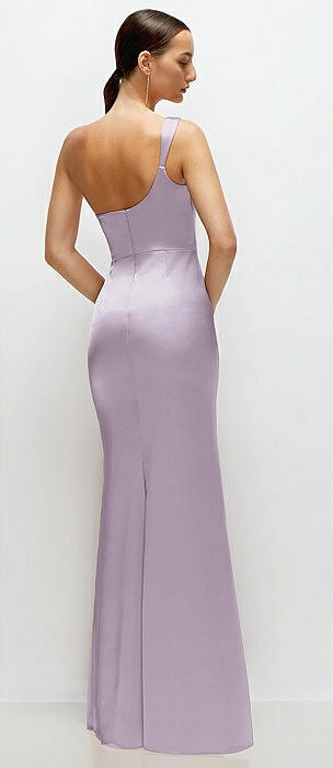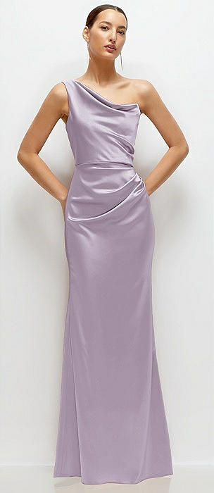 One-Shoulder Cat-Eye Neckline Fit and Flare Satin Maxi Dress in lilac haze