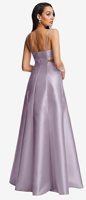 Open Neckline Cutout Satin Twill A-Line Gown with Pockets in lilac haze