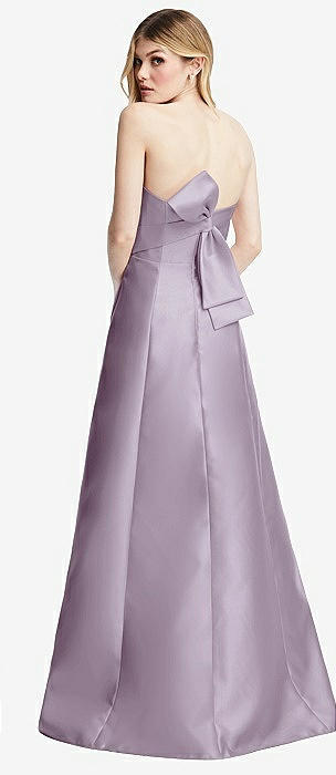 Strapless A-line Satin Gown with Modern Bow Detail in lilac haze