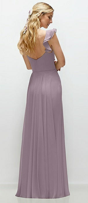 Plunge Neckline Bow Shoulder Empire Waist Chiffon Maxi Dress in lilac dusk