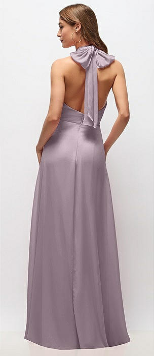 Draped Scarf Halter Open-Back Stretch Satin Bias Maxi Dress with Adjustable Straps in lilac haze