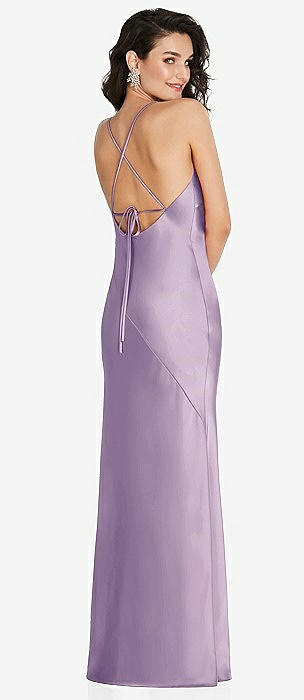 Draped Cowl-Back Princess Line Dress with Front Slit in pale purple