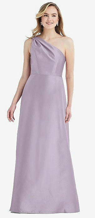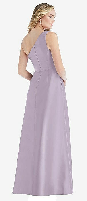 Pleated Draped One-Shoulder Satin Maxi Dress with Pockets in lilac haze