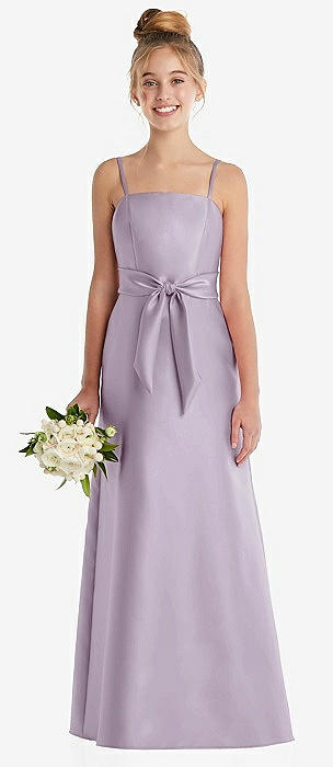 Spaghetti Strap Satin Junior Bridesmaid Dress with Mini Sash in lilac haze