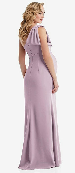 One-Shoulder Ruffle Sleeve Maternity Trumpet Gown in suede rose