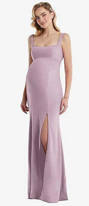 Wide Strap Square Neck Maternity Trumpet Gown in suede rose