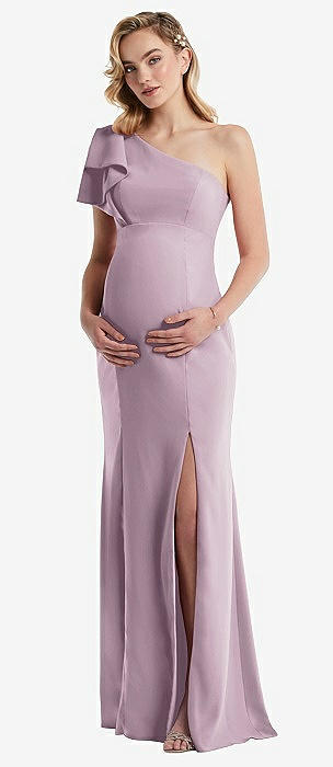 One-Shoulder Ruffle Sleeve Maternity Trumpet Gown in suede rose