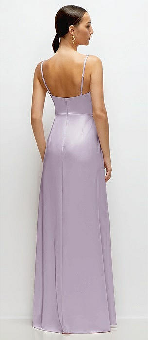 Cowl Neck Satin Maxi Dress with Adjustable Spaghetti Straps in lilac haze