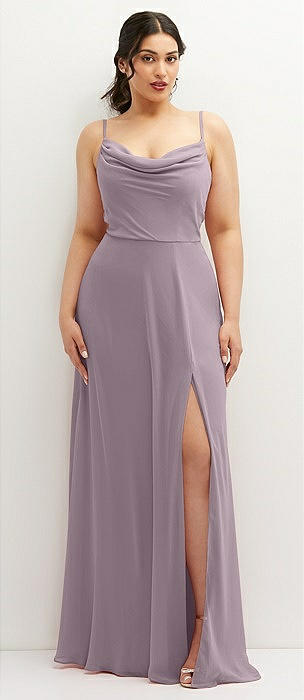 Soft Cowl-Neck A-Line Maxi Dress with Adjustable Straps in lilac dusk