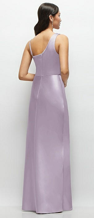 One-Shoulder Draped Cowl A-Line Satin Maxi Dress in lilac haze