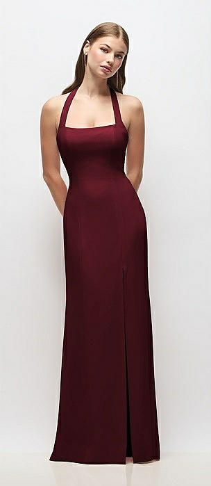 Square-Neck Satin A-line Maxi Dress with Front Slit in cabernet